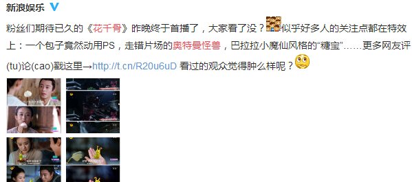 古装仙侠大剧《花千骨》已于昨晚正式登陆湖南卫视,这部获封年度最受期待的作品在开播当晚引发全民关注,一时间横扫各大排行榜。开播首日虽好评不断,但也遭到了网友的欢乐吐槽:瑶池初见改成英雄救美、奥特曼怪兽乱入、特效包子、杀阡陌像金星等,甚至有网友直呼是“奥特曼版西游记的即视感”。