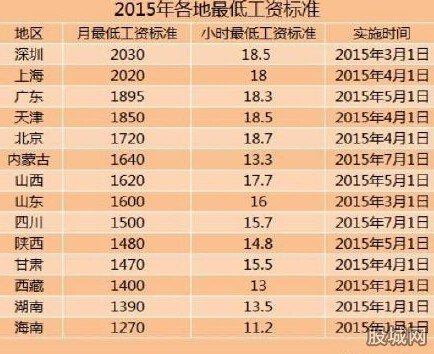 随着上述两个地区最低工资标准的上调,据不完全统计,进入2015年以来,全国已有湖南、海南、西藏、天津、深圳、山东、陕西、北京、上海、天津、甘肃、山西、四川、内蒙古等14个地区先后宣布提高最低工资标准。
