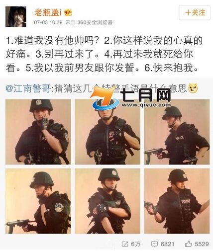 江南警哥发的特警手语是什么意思 江南警哥个人资料微博