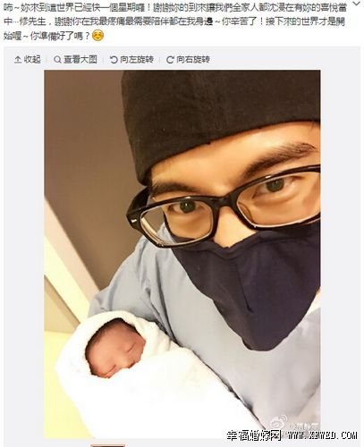 据台湾媒体报道,贾静雯和修杰楷的女儿“咘咘”出生了!贾静雯剖腹产下5.44斤的小咘咘,大眼睛和鼻子像妈妈,樱桃小嘴和下巴则像爸爸。