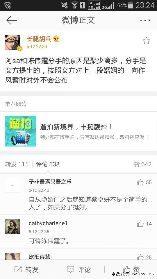 其实在今年5月的时候,已经传出来陈伟霆蔡卓妍分手的消息了,网友爆料是女方提出来的,按照蔡卓妍隐婚的一向作风是不会发布的。