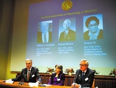 瑞典卡罗琳医学院5日在斯德哥尔摩宣布,将2015年诺贝尔生理学或医学奖授予中国女药学家屠呦呦,以及另外两名科学家威廉·坎贝尔和大村智,表彰他们在寄生虫疾病治疗研究方面取得的成就。