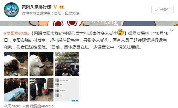 贵阳煤矿村疑似发生打架群殴事件多人受伤