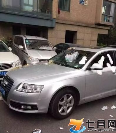 今年7月,象山一小区地下停车场,一辆奥迪Q5被人贴上了用过的卫生巾。据说,同样是因为情感纠葛。