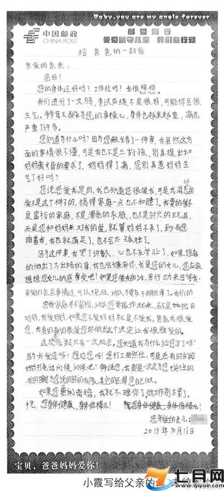共农小学陈霞劝父书原文内容阅读 劝爸爸不要和患病妈妈离婚