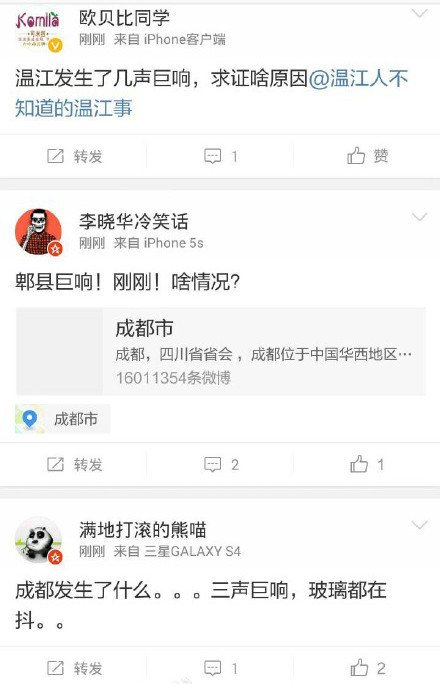 成都网友听到巨响郫县双流温江各地网友均反映 不知是否爆炸