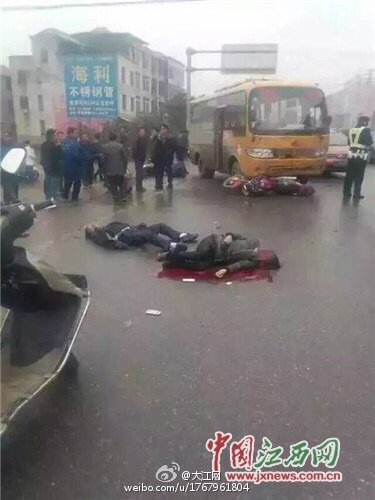 随后,记者从萍乡市公安局交警支队了解到,事故是一辆摩托车跟一辆客车发生碰撞,摩托车上的两人是一对夫妻,被撞后2人当场身亡,同时事故还造成了另一辆行驶的摩托车上2人受伤。