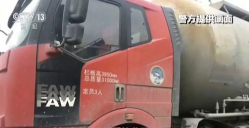 哈尔滨市公安局香坊分局 李树涛:根据他们提供的线索,犯罪集团会给在驾驶室的车门右上方贴一个圆形的鲨鱼标。我们在长江路经过蹲守发现,大量的水泥罐车和拉沙石的翻斗车都有这种鲨鱼标志。