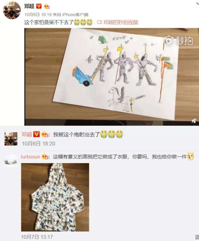 欸……不过邓超和等等这父子俩向来“相爱相杀”。等等此前的一副艺术创作中,自己保护了妈妈和妹妹,还把老爸“发射上了天”,让邓超直呼在这个家呆不下去了。